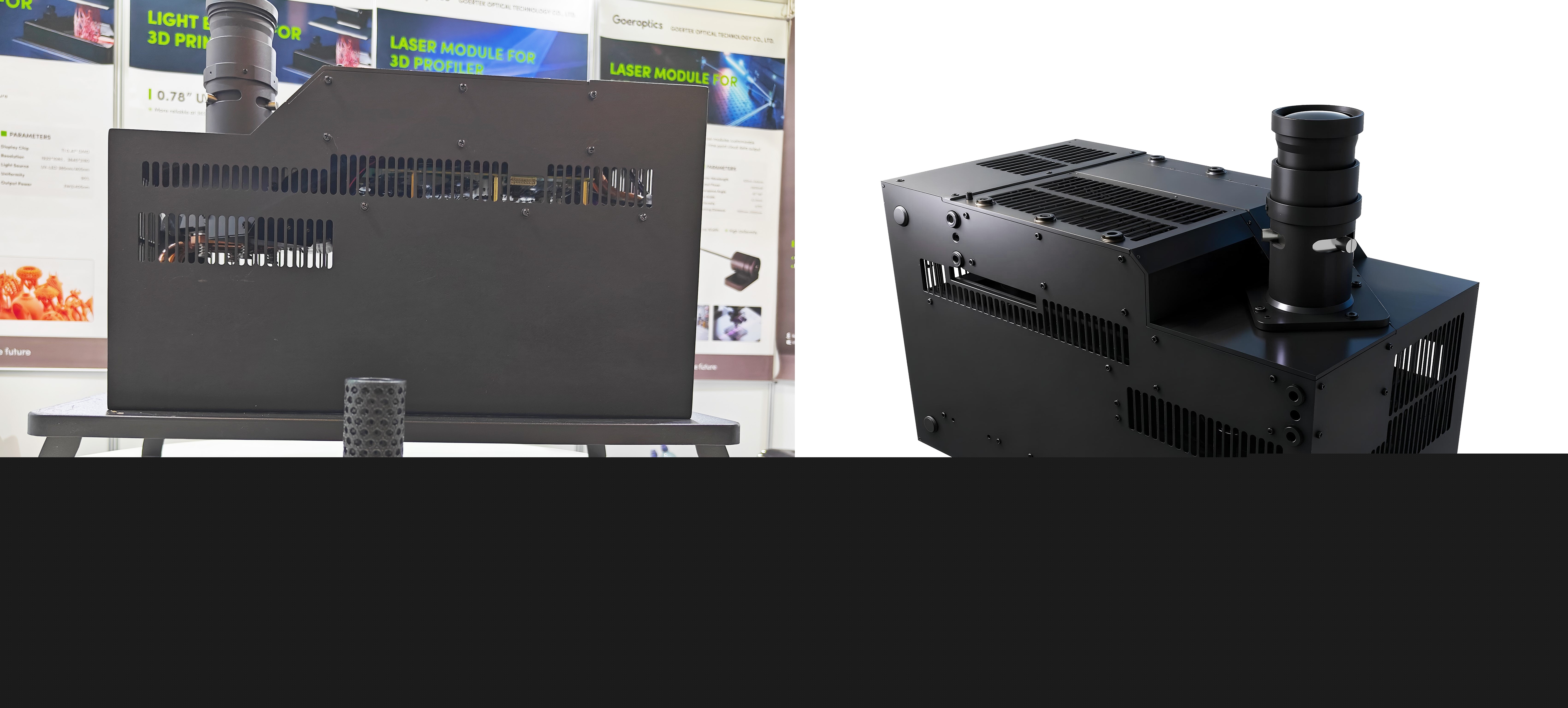 同期展示的還有3D視覺解決方案,包括高精度3D掃描光機與工業激光模組系列。其中,基于DLP技術的3D掃描光機可快速切換結構光圖案,精準捕捉復雜表面細節,在保證高性能的同時實現小型化,適用于工業測量、虛擬場景重現等多場景。工業激光模組創新應用線激光技術,高斯分布特性超?90%,實現微米級測量精度,掃描線條均勻,滿足3C電子、鋰電池等精密元器件的3D輪廓工業檢測需求。